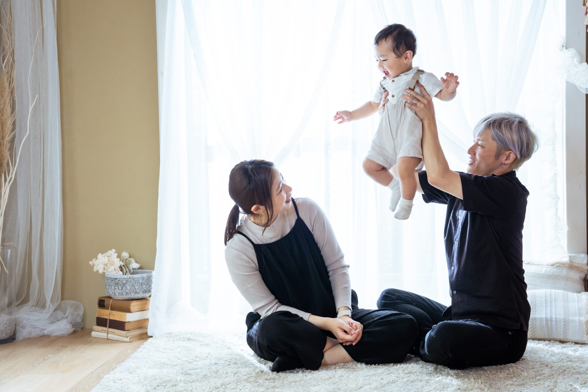 お宮参り・100日・ファーストバースデーと何度もお世話になっています。お宮参りは真夏の阿佐ヶ谷神明宮へ出張。暑さで大変でしたが外でしか撮れない特別な写真をみたときに、やっぱり出張していただいて良かったなと思えました。100日祝いとファーストバースデーはスタジオ撮影にしました。こじんまりとしたアパートで撮ったとは思えないくらい光が美しい写真をたくさん撮ってくださいます。